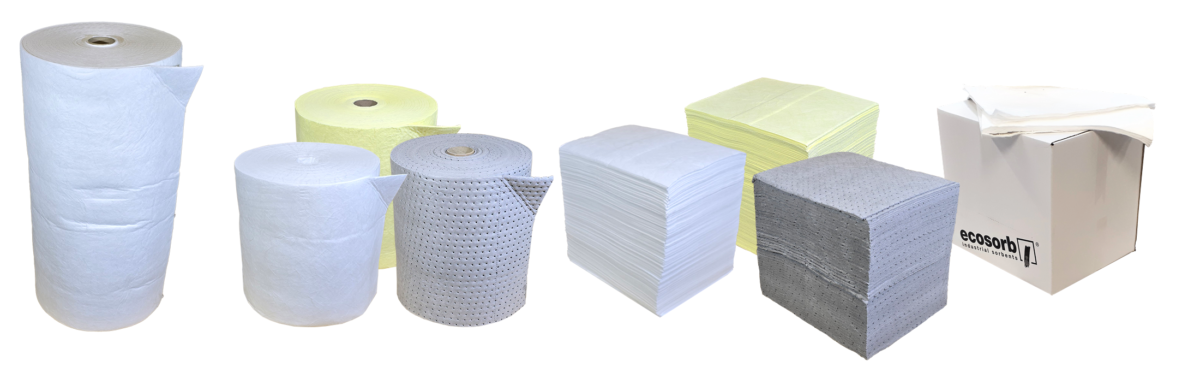 ECOSORB Sorbent pads, sold per cartons. Stocked in all varieties and available for quick delivery. Convenient format for daily operations, smaller spills, and maintenance.